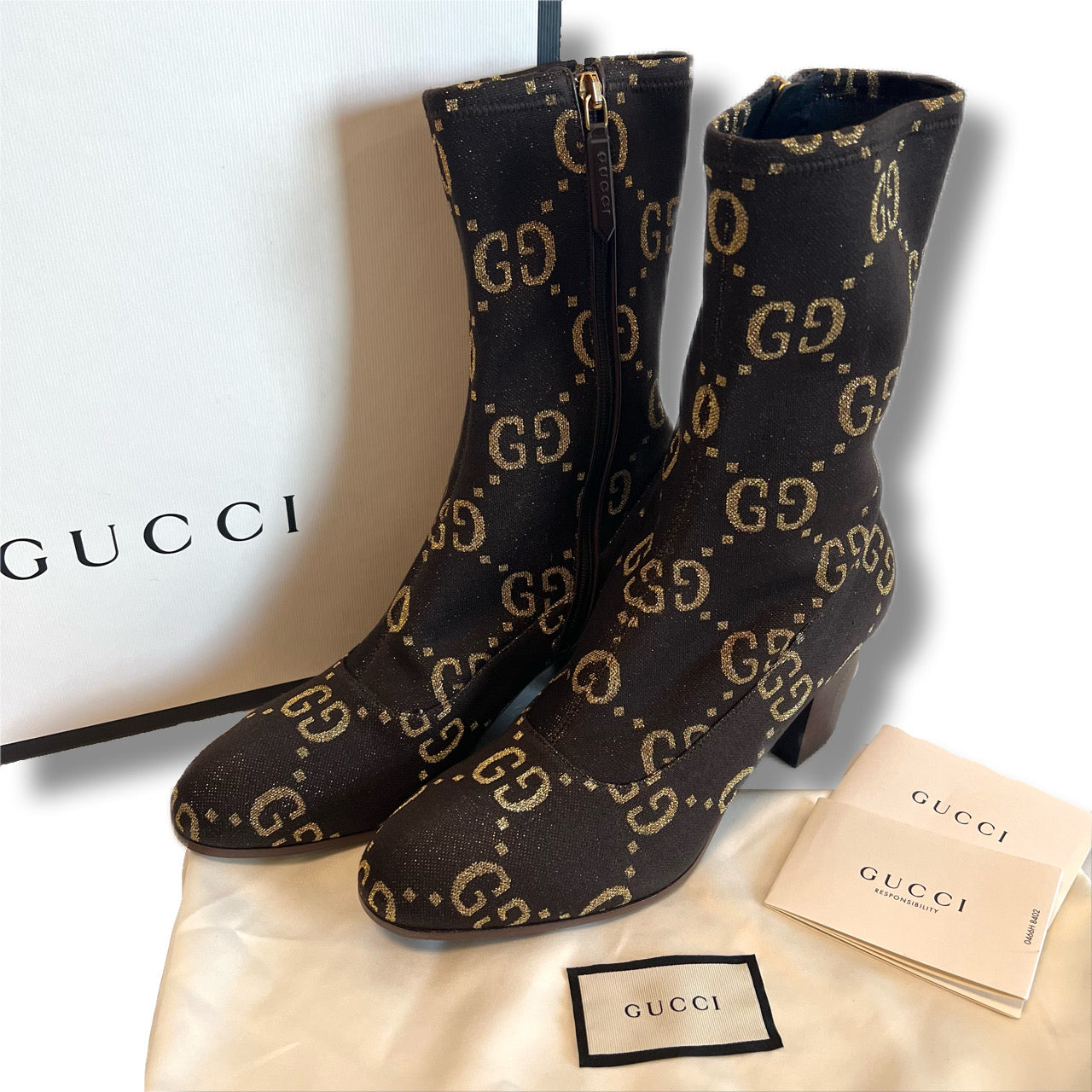 GUCCI グッチ ソックスブーツ GG柄 ブラウン